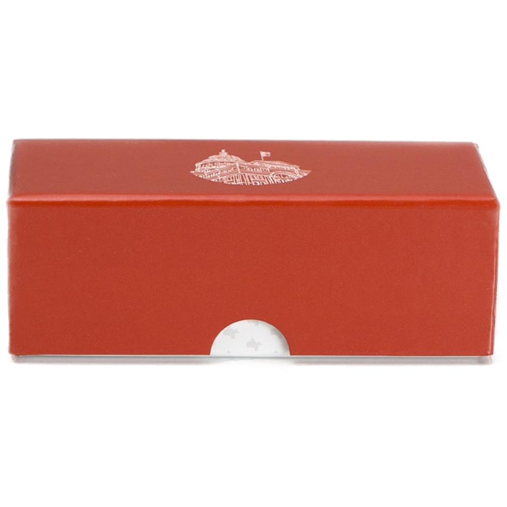 If purchased in a set of 10, the Texas Gold Rounds are packaged in a glossy orange chipboard box with velour flocked interior slots and vacuum-sealed with a holographic tamper-proof seal. Each gold round in the case is enclosed in an individual capsule holder to preserve its pristine condition. The motif of the round is repeated on the lid of the rectangular box, with the image of the Capitol displayed on the center and the geographic outline of Texas appearing in white on each end.